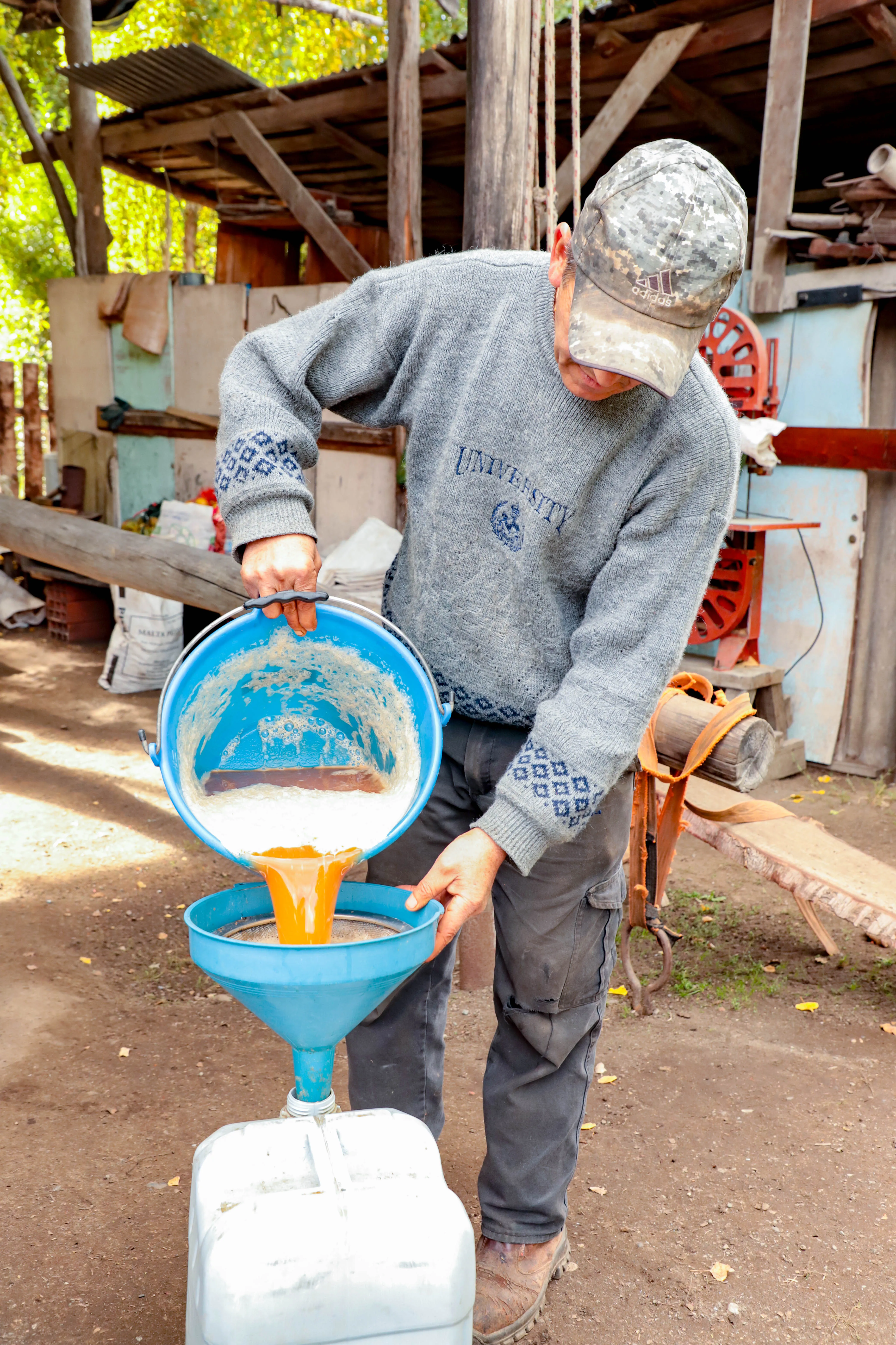 Los vecinos llevan sus manzanas a una chichera del barrio Luján, donde a cambio de parte de la cosecha les prensa la fruta y entrega la chicha. Cada uno elige si lo bebe fresco o lo deja fermentar a lo largo de un par de meses, y sin agregado alguno en este caso produce una baja graduación alcohólica.