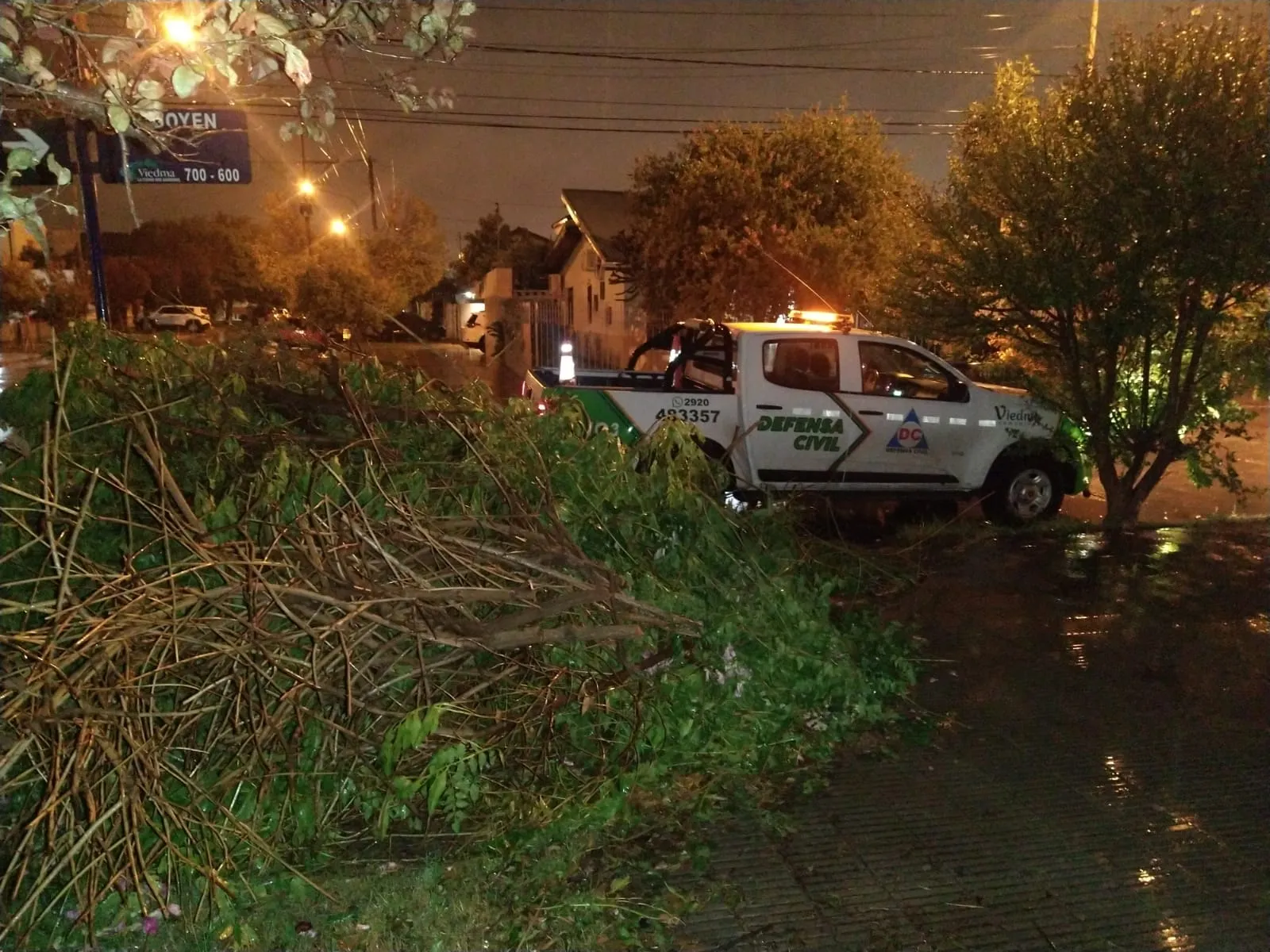 Otras acciones incluyen el corte de calle a raíz de un poste caído en calle Cipolletti y Remedios de Escalada del barrio San Martín, asistencia por árbol caído en calle Urquiza e Yrigoyen, árboles caídos en la zona de bulevar Contín, y recorridas permanentes en los barrios más anegados de la ciudad.