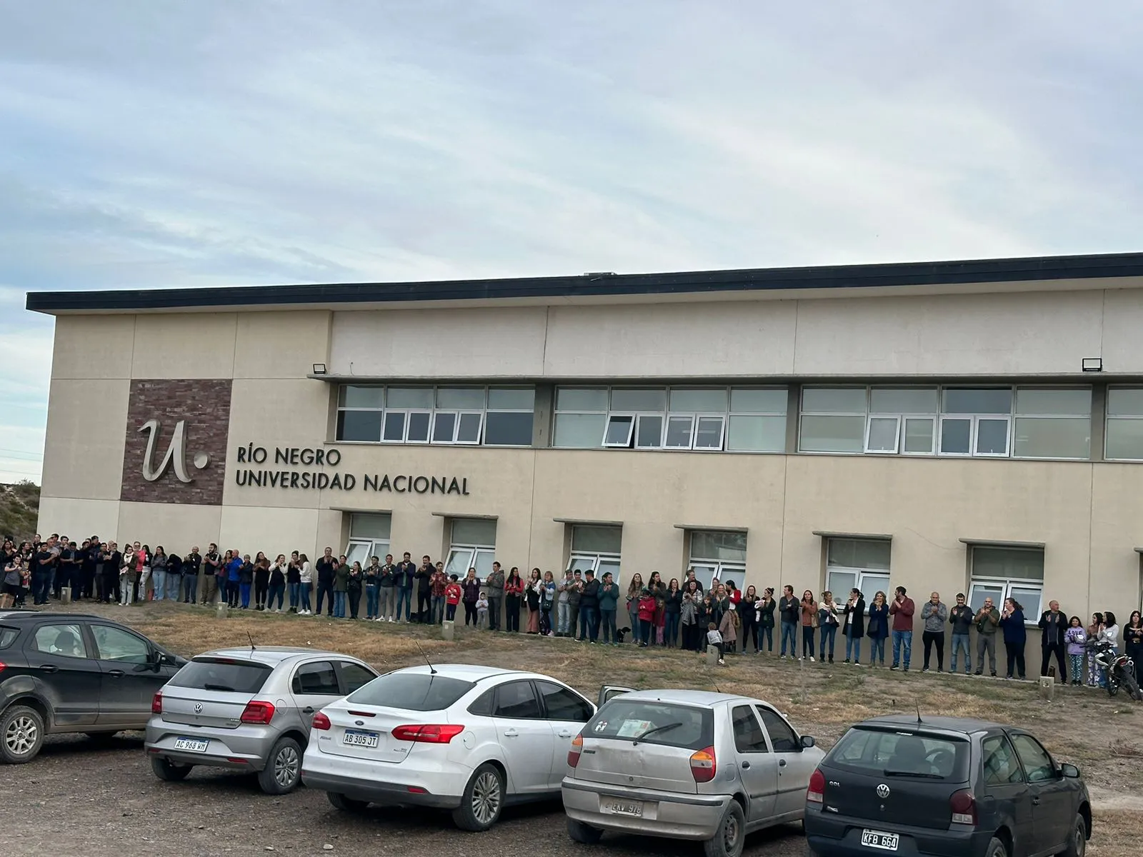 A partir de una iniciativa de graduados y graduadas de la UNRN Sede Atlántica, a la que se sumaron los trabajadores no docentes (ATURN), el Sindicato de Docentes de la UNRN (SIDUNRN), la Asociación Docentes de la UNRN (ADURN) y el Centro de Estudiantes Sede Atlántica (CESA) se llevó a cabo ayer un abrazo simbólico al Campus de la Universidad Nacional de Río Negro en Viedma, en reclamo frente a la situación presupuestaria en la que se encuentra el sistema universitario argentino.