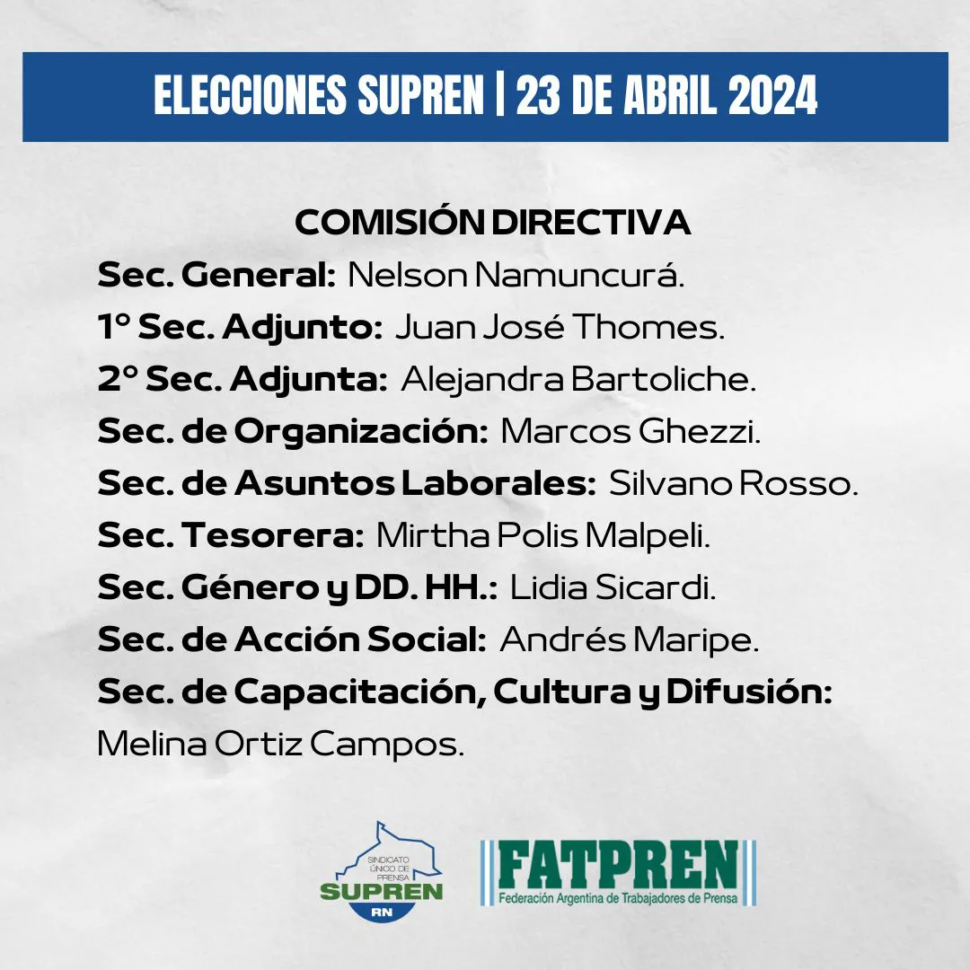 Para la oportunidad se presentó una sola lista, encabezada por Nelson Namuncurá, que contó con el respaldo del 77,5% de los afiliados.