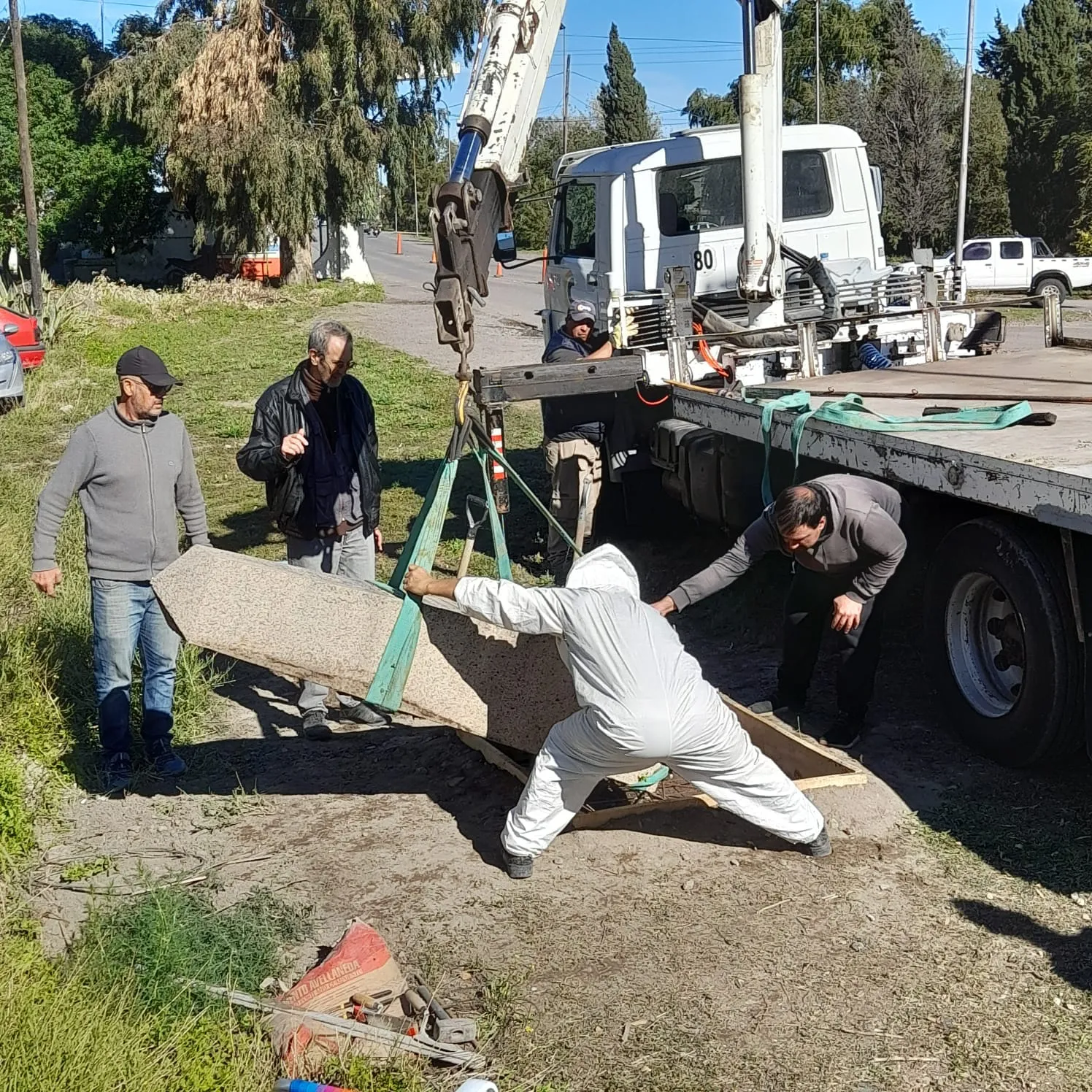 Con el permiso municipal correspondiente se avocaron a la tarea y hoy pudieron concretarlo. El monolito está en pie.