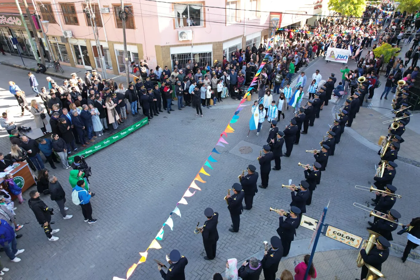 El intendente Marcos Castro inauguró el desfile y dijo: "Es realmente muy satisfactorio poder estar acá, viendo tanta gente celebrando nuestra historia y con cuestiones por reflexionar, sobre lo que somos, por lo que vivimos, y fundamentalmente por lo que queremos ser".
