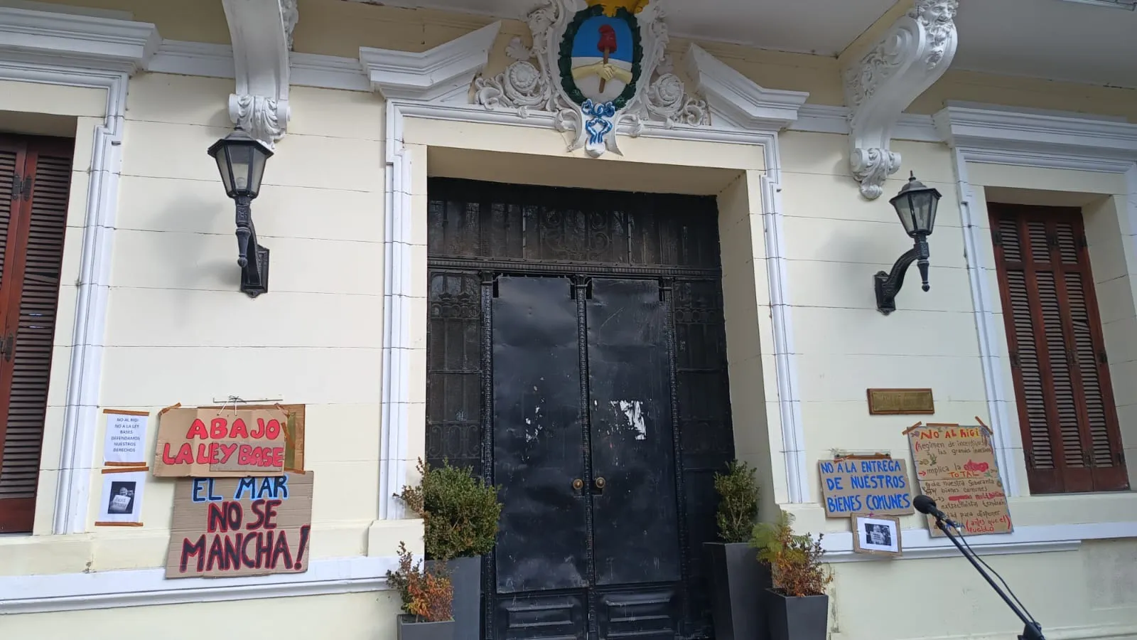 (VIDEO) Protesta contra la Ley Bases en Viedma: "No hay que bajarse los pantalones ante Nación"