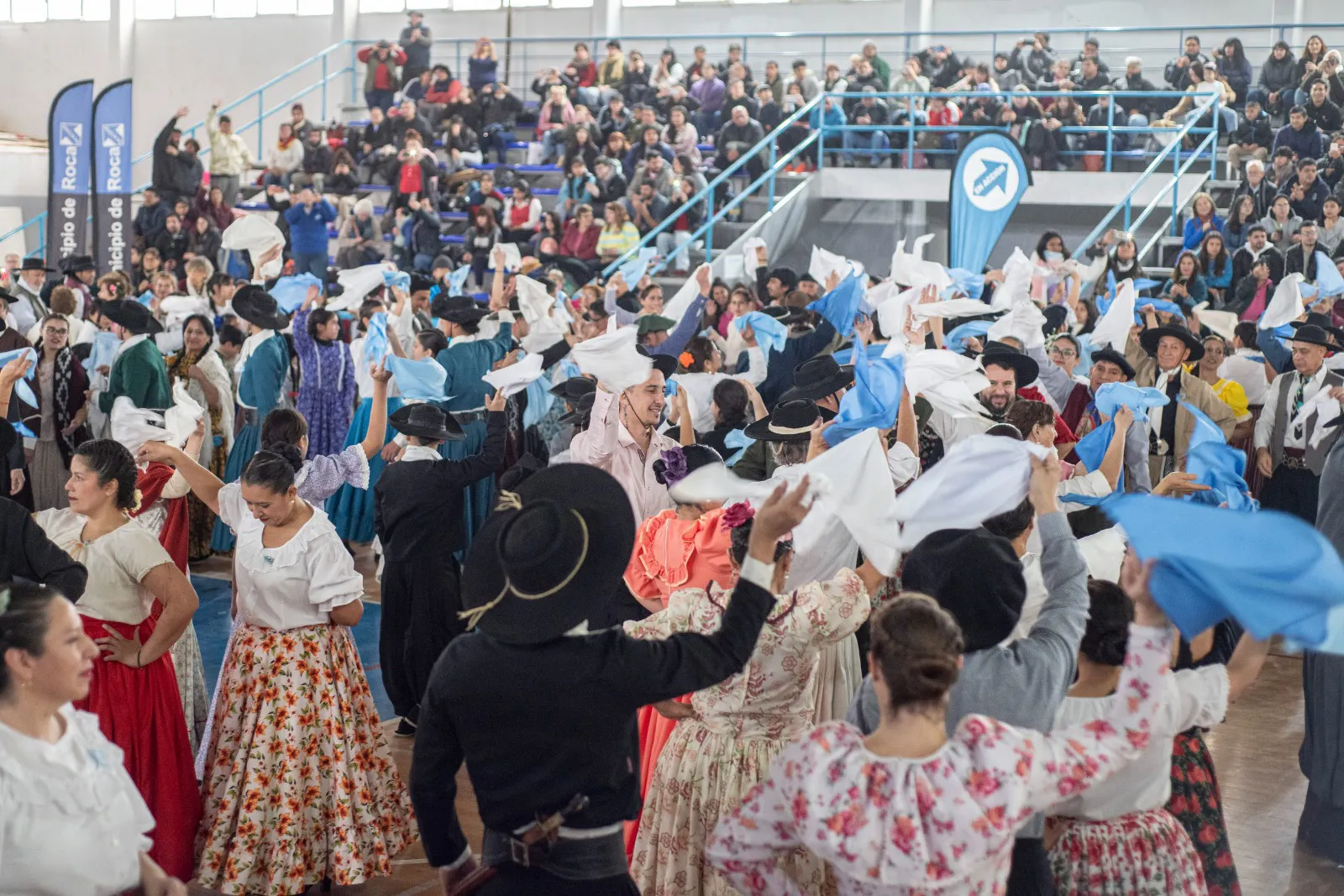 Desde allí, el Acto Patrio se trasladó al Polideportivo Gimena López, donde vecinas y vecinos disfrutaron del Pericón Nacional con más de 400 bailarines/as de Talleres Municipales y Ballets independientes; con voces de mando estarán a cargo de la profesora Elisa Osses.